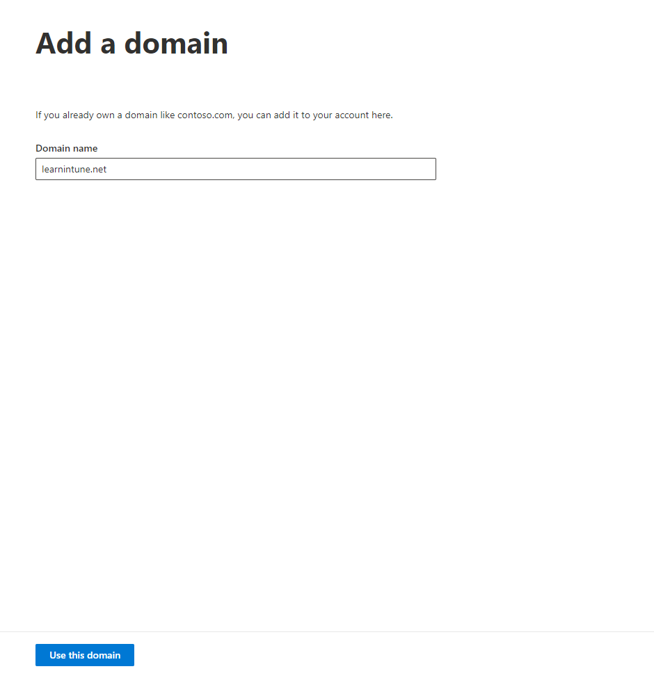 Already from the start, I can see that LearnIntune.net is the default domain. That’s perfect!