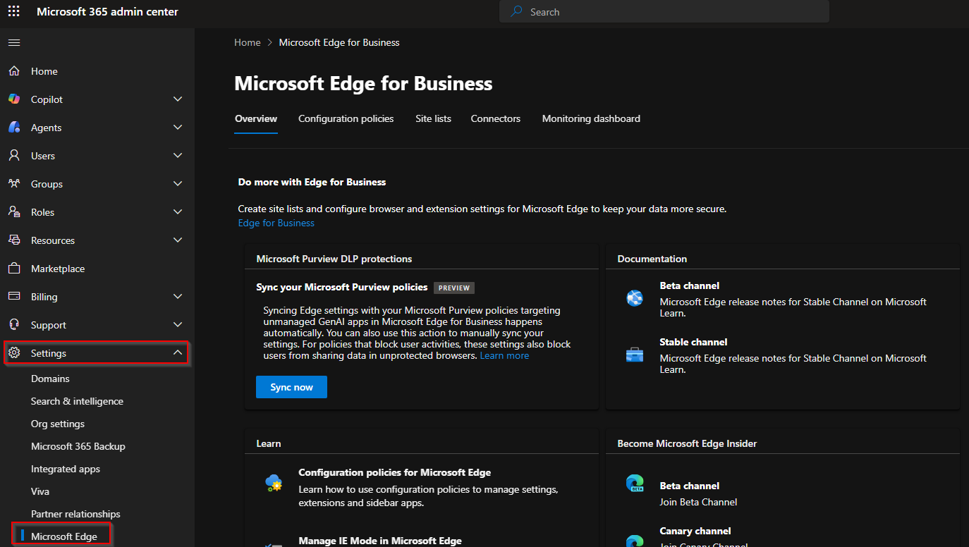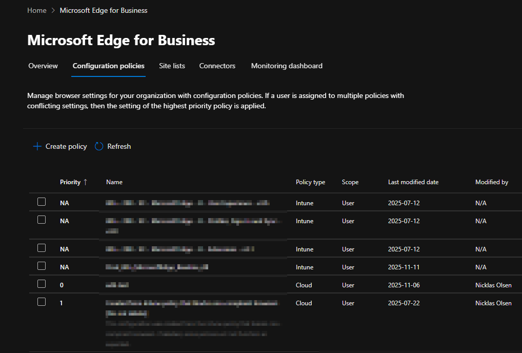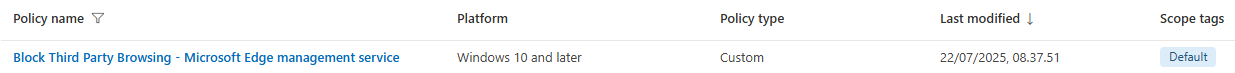 In here, you can find all your Edge configurations from Intune and from the service itself.