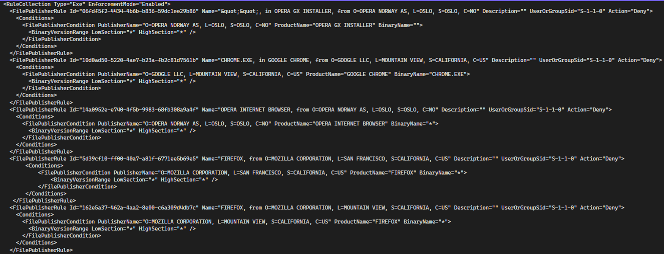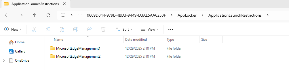 If you take a closer look on the device, you will be able to find the AppLocker policies. Navigate to C:\Windows\System32\AppLocker\MDM\<>\<>\AppLocker\ApplicationLaunchRestrictions.