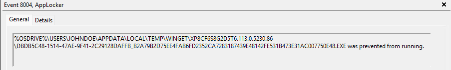 You can also view the AppLocker event logs on the device. If you open event viewer, and unfold the "Applications and Services Log", Microsoft and Windows. Under the Windows section, we will be able to find the App Locker folder. Once you open the EXE and DLL logs, you will be able to see all the information.