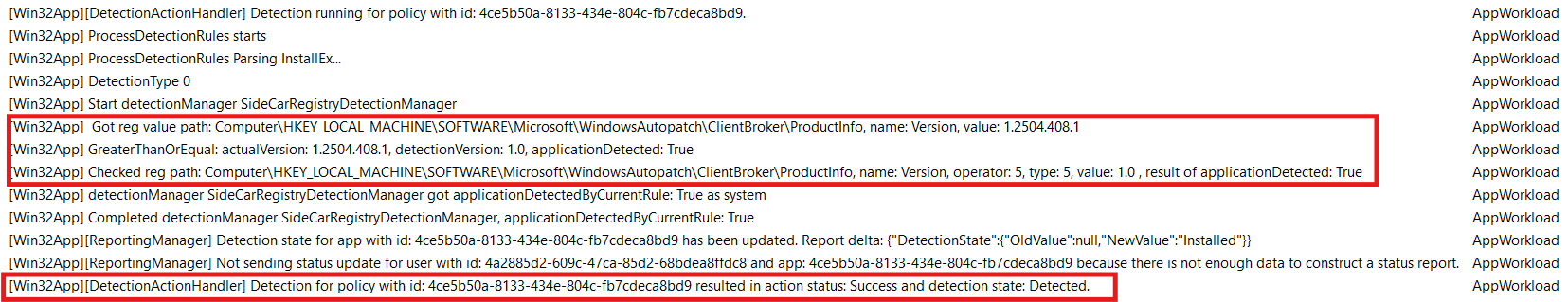 When a device that already has Autopatch installed checks in with the Intune service, it will evaluate the detection rule that has been created in Intune. As you can see from below picture, the application is detected.