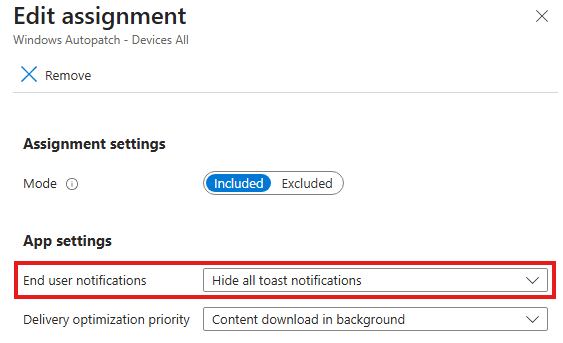 If you click on that specific action, you will now get the below view. You can add more groups, or by default you will have the "Windows Autopatch - Devices All".
